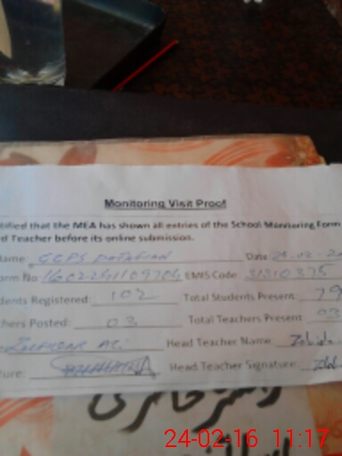 | Attendance Register | Head Teacher | MEA with School | Visit Proof |