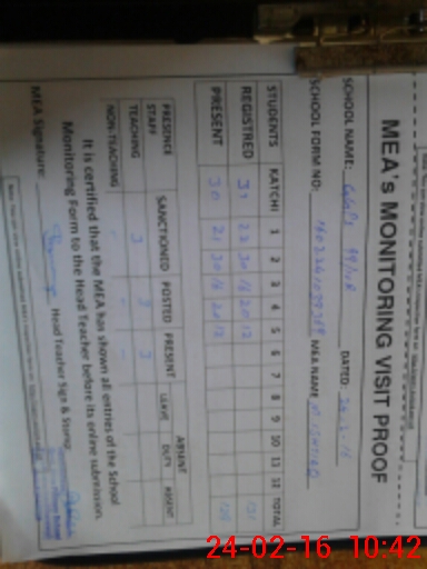 | Certified that this School was Inspected by the Undersigned MEA/DMO Today and the Information Stated Above is as Per Record. | |||||