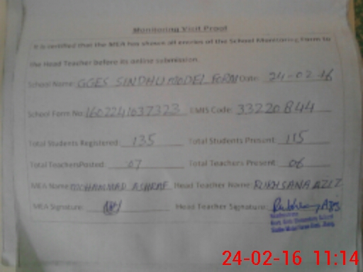 | Certified that this School was Inspected by the Undersigned MEA/DMO Today and the Information Stated Above is as Per Record. | |||||