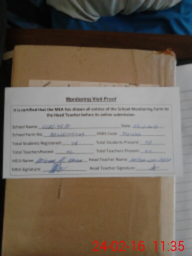 | Attendance Register | Head Teacher | MEA with School | Visit Proof |
