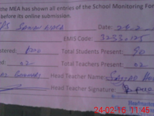 | EMIS Code: 32330125 | Name of School: GPS SAWAN WALA | |||