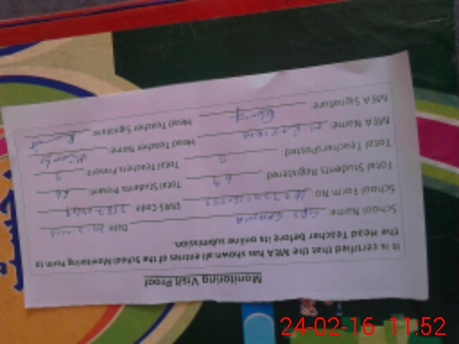 | Certified that this School was Inspected by the Undersigned MEA/DMO Today and the Information Stated Above is as Per Record. | |||||