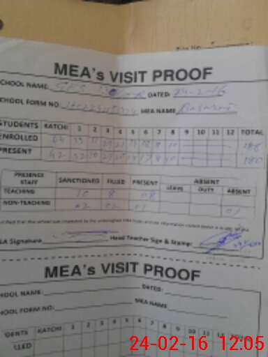 | Certified that this School was Inspected by the Undersigned MEA/DMO Today and the Information Stated Above is as Per Record. | |||||