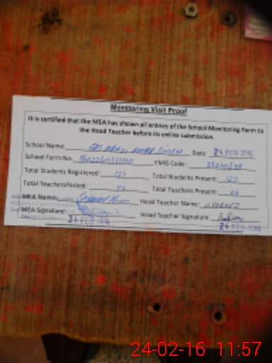 | Certified that this School was Inspected by the Undersigned MEA/DMO Today and the Information Stated Above is as Per Record. | |||||
