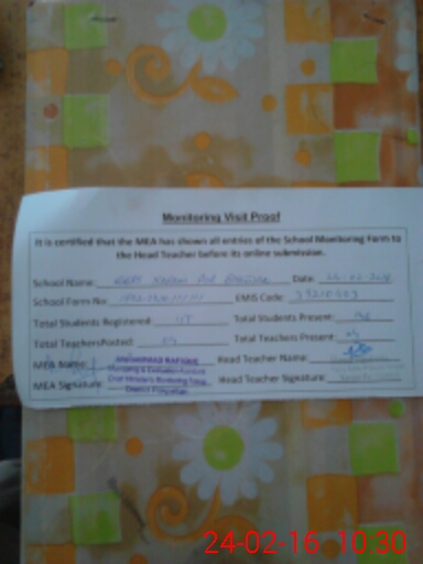 | Certified that this School was Inspected by the Undersigned MEA/DMO Today and the Information Stated Above is as Per Record. | |||||