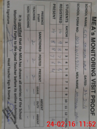 | Certified that this School was Inspected by the Undersigned MEA/DMO Today and the Information Stated Above is as Per Record. | |||||