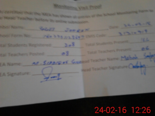 | Certified that this School was Inspected by the Undersigned MEA/DMO Today and the Information Stated Above is as Per Record. | |||||