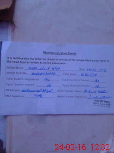 | Attendance Register | Head Teacher | MEA with School | Visit Proof |