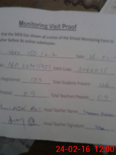 | Attendance Register | Head Teacher | MEA with School | Visit Proof |
