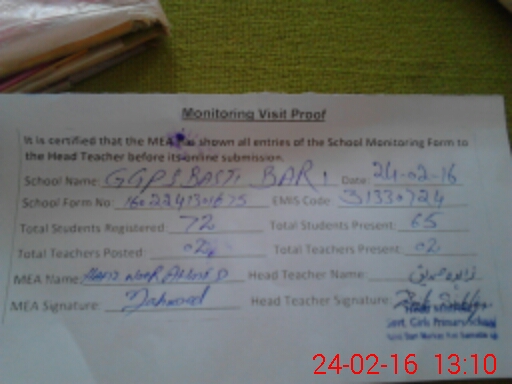 | Certified that this School was Inspected by the Undersigned MEA/DMO Today and the Information Stated Above is as Per Record. | |||||
