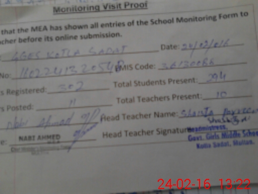 | EMIS Code: 36130088 | Name of School: GGES KOTLA SADAT NEAR SADIQ ABAD MULTAN | |||