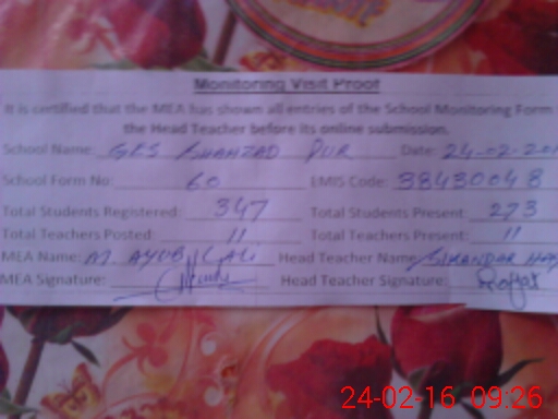 | EMIS Code: 38430048 | Name of School: GES SHAHZAD PUR | |||