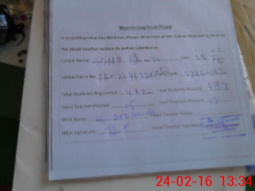 | Attendance Register | Head Teacher | MEA with School | Visit Proof |