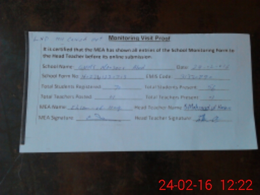 | Certified that this School was Inspected by the Undersigned MEA/DMO Today and the Information Stated Above is as Per Record. | |||||