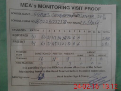 | Attendance Register | Head Teacher | MEA with School | Visit Proof |