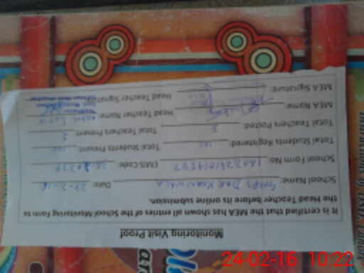 | Attendance Register | Head Teacher | MEA with School | Visit Proof |
