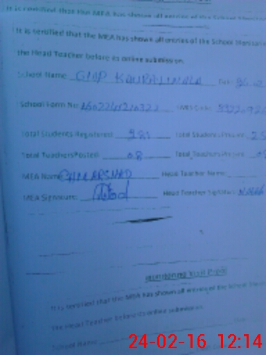 | Certified that this School was Inspected by the Undersigned MEA/DMO Today and the Information Stated Above is as Per Record. | |||||