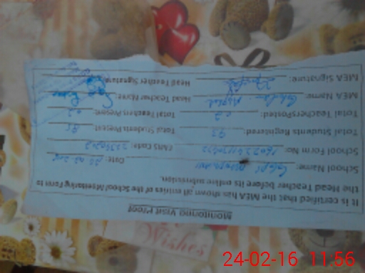 | Certified that this School was Inspected by the Undersigned MEA/DMO Today and the Information Stated Above is as Per Record. | |||||