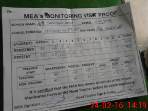 | Certified that this School was Inspected by the Undersigned MEA/DMO Today and the Information Stated Above is as Per Record. | |||||