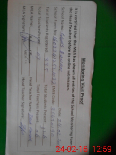 | Certified that this School was Inspected by the Undersigned MEA/DMO Today and the Information Stated Above is as Per Record. | |||||