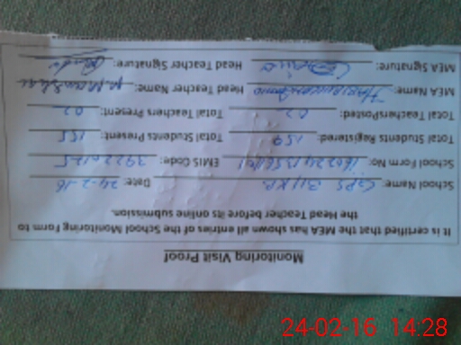 | Certified that this School was Inspected by the Undersigned MEA/DMO Today and the Information Stated Above is as Per Record. | |||||