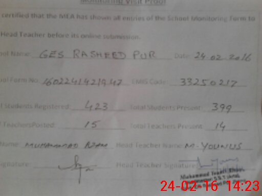 | EMIS Code: 33250217 | Name of School: GES RASHEED PUR | |||