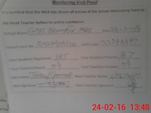 | EMIS Code: 33240497 | Name of School: GMPS ISLAM PUR FARAZ | |||