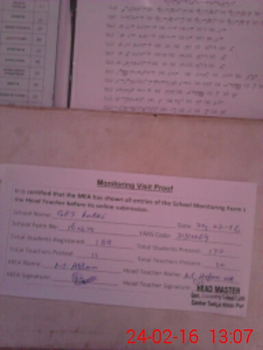 | Certified that this School was Inspected by the Undersigned MEA/DMO Today and the Information Stated Above is as Per Record. | |||||