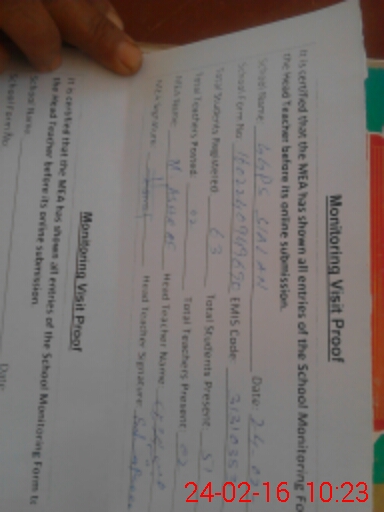 | Certified that this School was Inspected by the Undersigned MEA/DMO Today and the Information Stated Above is as Per Record. | |||||