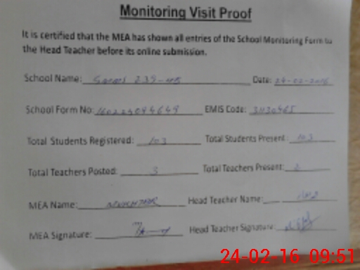 | Certified that this School was Inspected by the Undersigned MEA/DMO Today and the Information Stated Above is as Per Record. | |||||