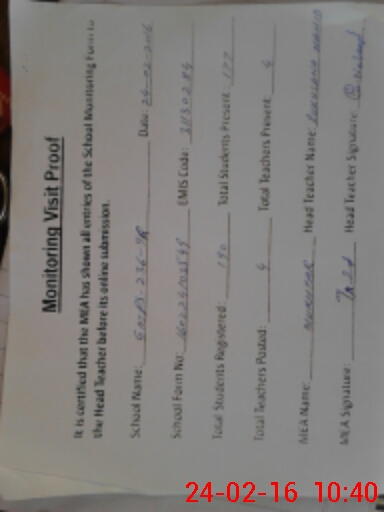 | Certified that this School was Inspected by the Undersigned MEA/DMO Today and the Information Stated Above is as Per Record. | |||||