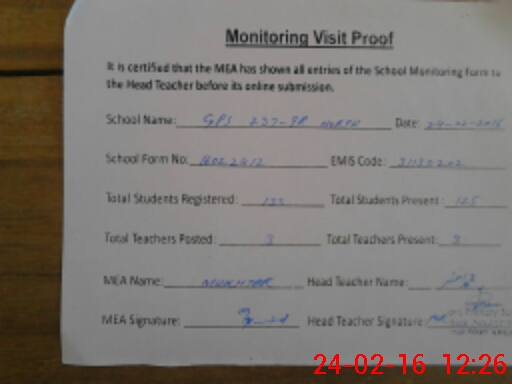 | Attendance Register | Head Teacher | MEA with School | Visit Proof |