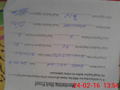 | Attendance Register | Head Teacher | MEA with School | Visit Proof |