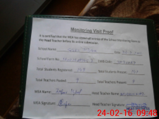 | Attendance Register | Head Teacher | MEA with School | Visit Proof |