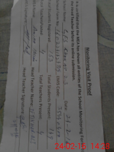 | EMIS Code: 35440400 | Name of School: GES CHAK NO. 23 UCC NORTH | |||