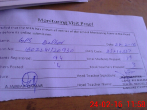 | EMIS Code: 35210337 | Name of School: GPS BALHAR TEHSIL MODEL TOWN | |||