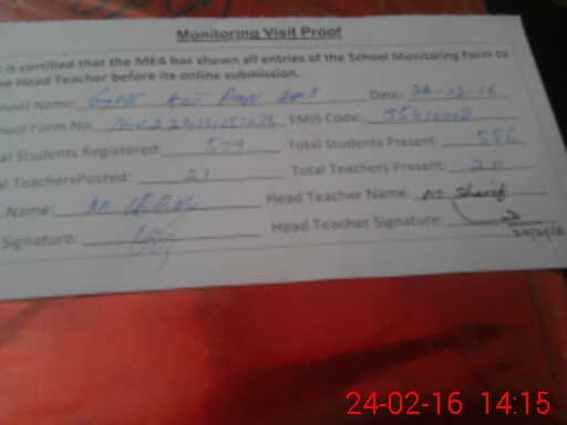 | Certified that this School was Inspected by the Undersigned MEA/DMO Today and the Information Stated Above is as Per Record. | |||||