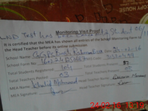 | Certified that this School was Inspected by the Undersigned MEA/DMO Today and the Information Stated Above is as Per Record. | |||||