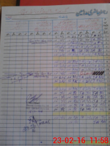 | CNIC | Full Name | Designation | R/C | Absence During Last Calender Month |