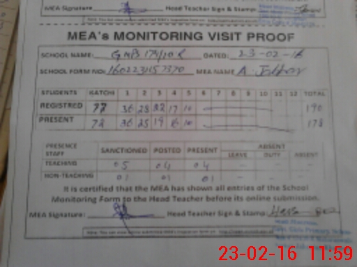 | Attendance Register | Head Teacher | MEA with School | Visit Proof |