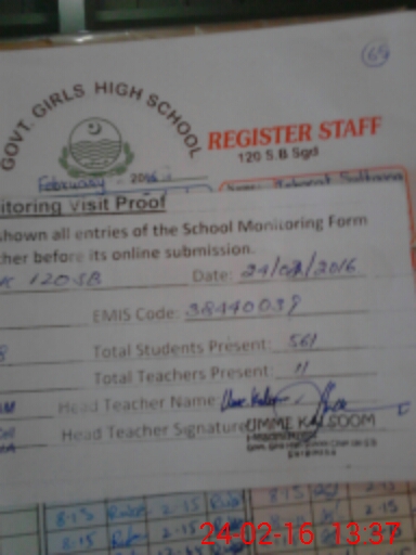 | EMIS Code: 38440039 | Name of School: GGHS CHAK NO.120 SB | |||