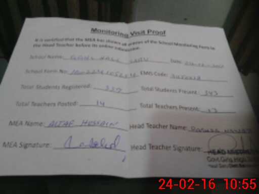 | Certified that this School was Inspected by the Undersigned MEA/DMO Today and the Information Stated Above is as Per Record. | |||||
