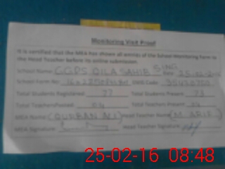 | Attendance Register | Head Teacher | MEA with School | Visit Proof |