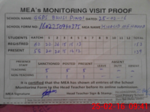 | EMIS Code: 36430365 | Name of School: GGPS BHUSI PINDI, TULAMBA | |||