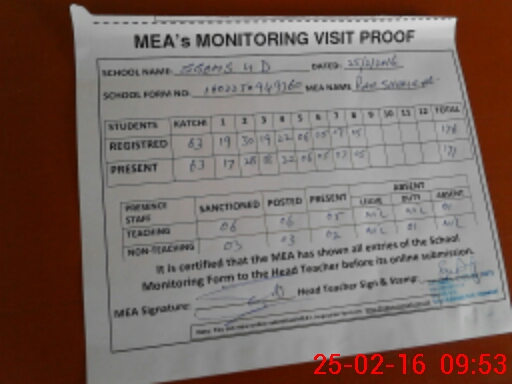 | Attendance Register | Head Teacher | MEA with School | Visit Proof |