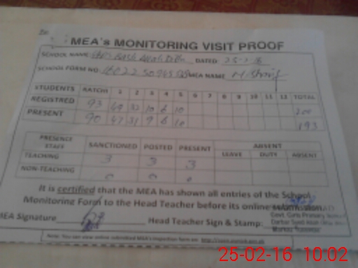 | Certified that this School was Inspected by the Undersigned MEA/DMO Today and the Information Stated Above is as Per Record. | |||||