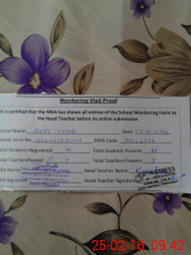 | Attendance Register | Head Teacher | MEA with School | Visit Proof |