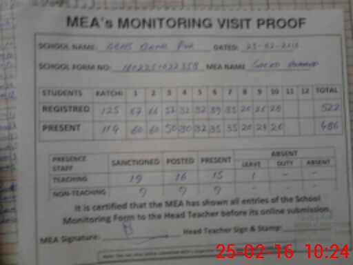 | Certified that this School was Inspected by the Undersigned MEA/DMO Today and the Information Stated Above is as Per Record. | |||||