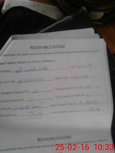| Attendance Register | Head Teacher | MEA with School | Visit Proof |