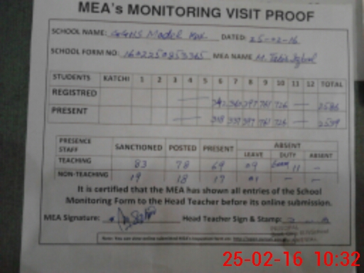 | Certified that this School was Inspected by the Undersigned MEA/DMO Today and the Information Stated Above is as Per Record. | |||||